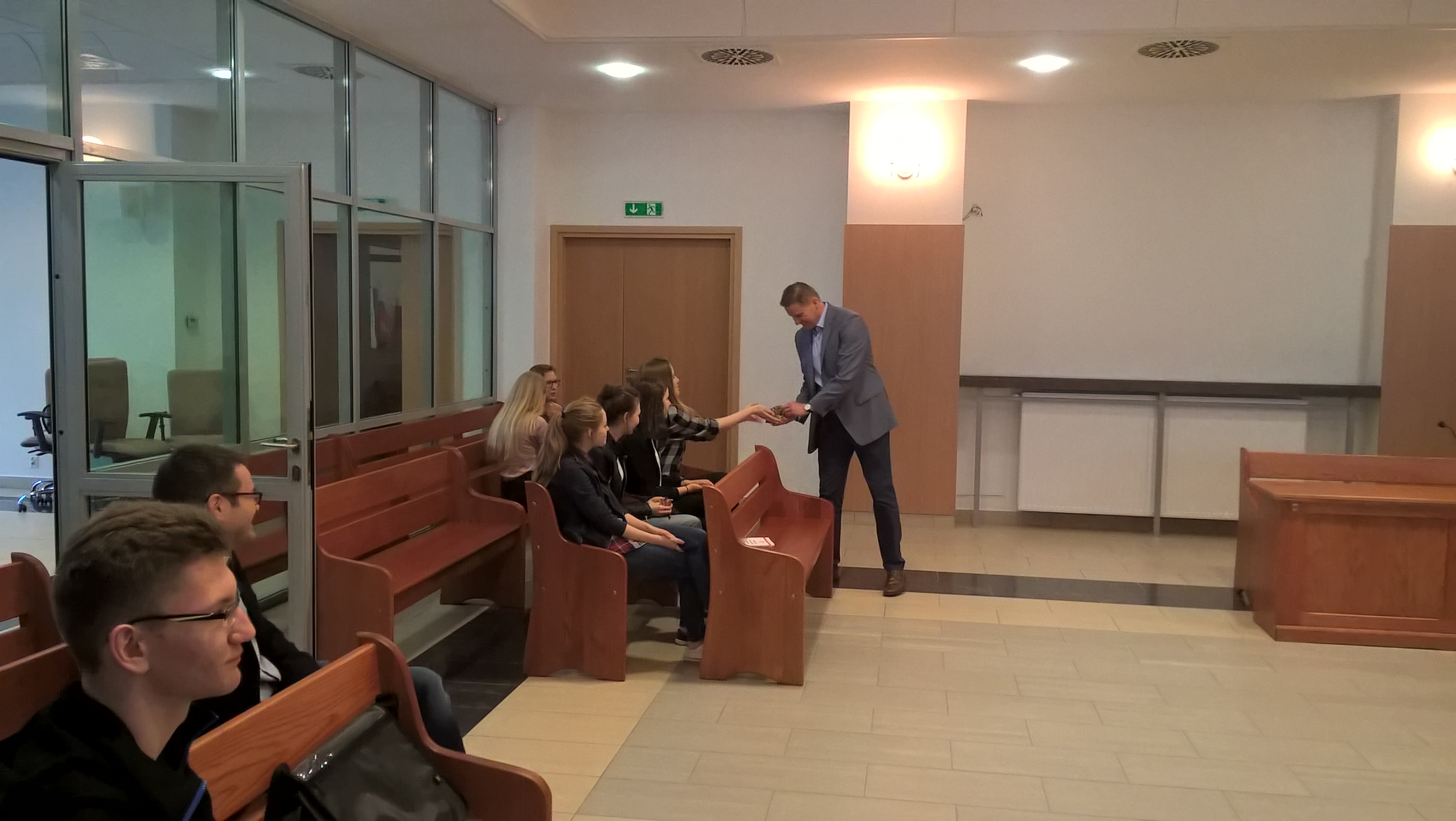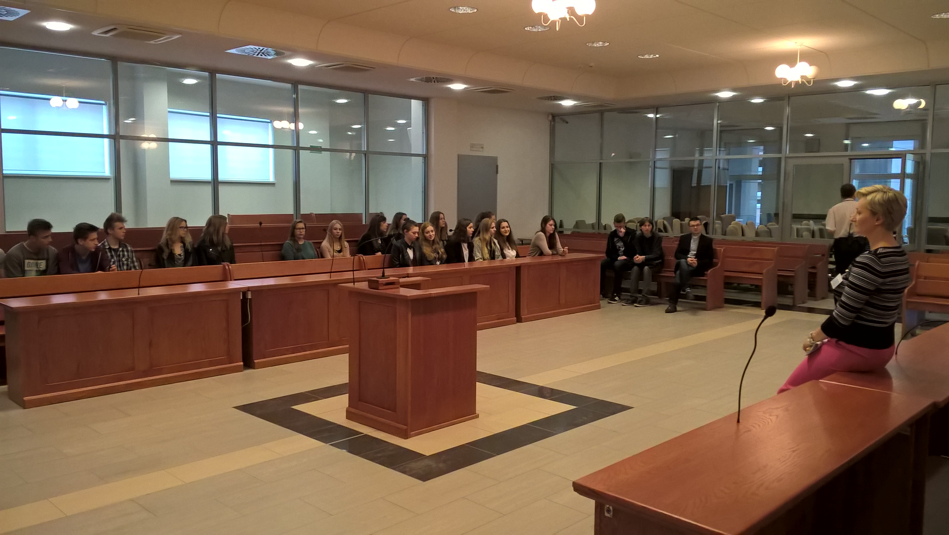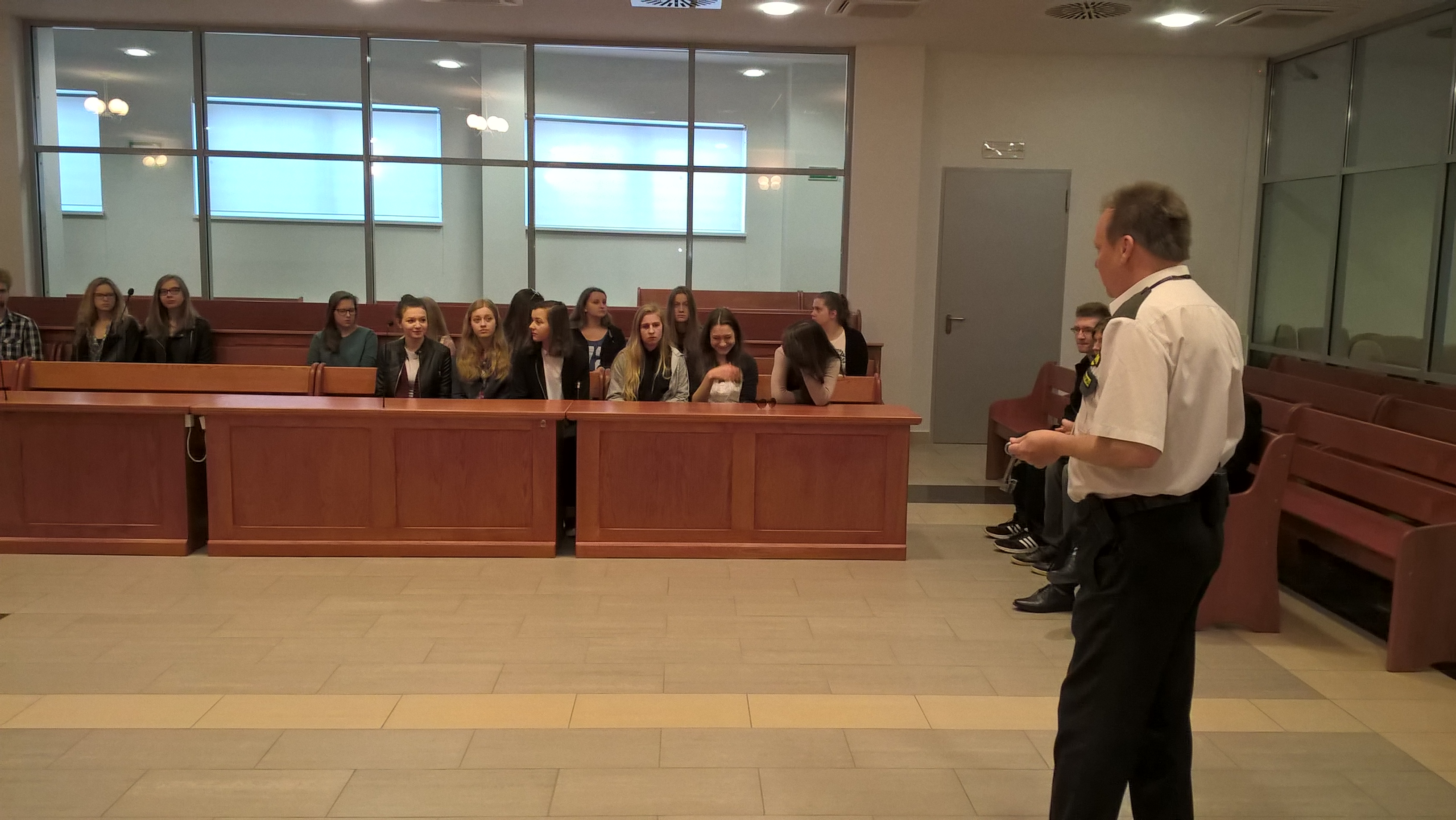 a największe emocje wzbudziła sala rozpraw i cele aresztantów. Oprowadzająca nas p. kierownik Oddziału Administracyjnego Katarzyna Turkowska opowiedziała o kulisach pracy Sądu Okręgowego, a następnie sędzia Olgierd Dąbrowski-Żegalski opisał kulisy pracy sędziego i przedstawił trudną drogę do tego zawodu.
