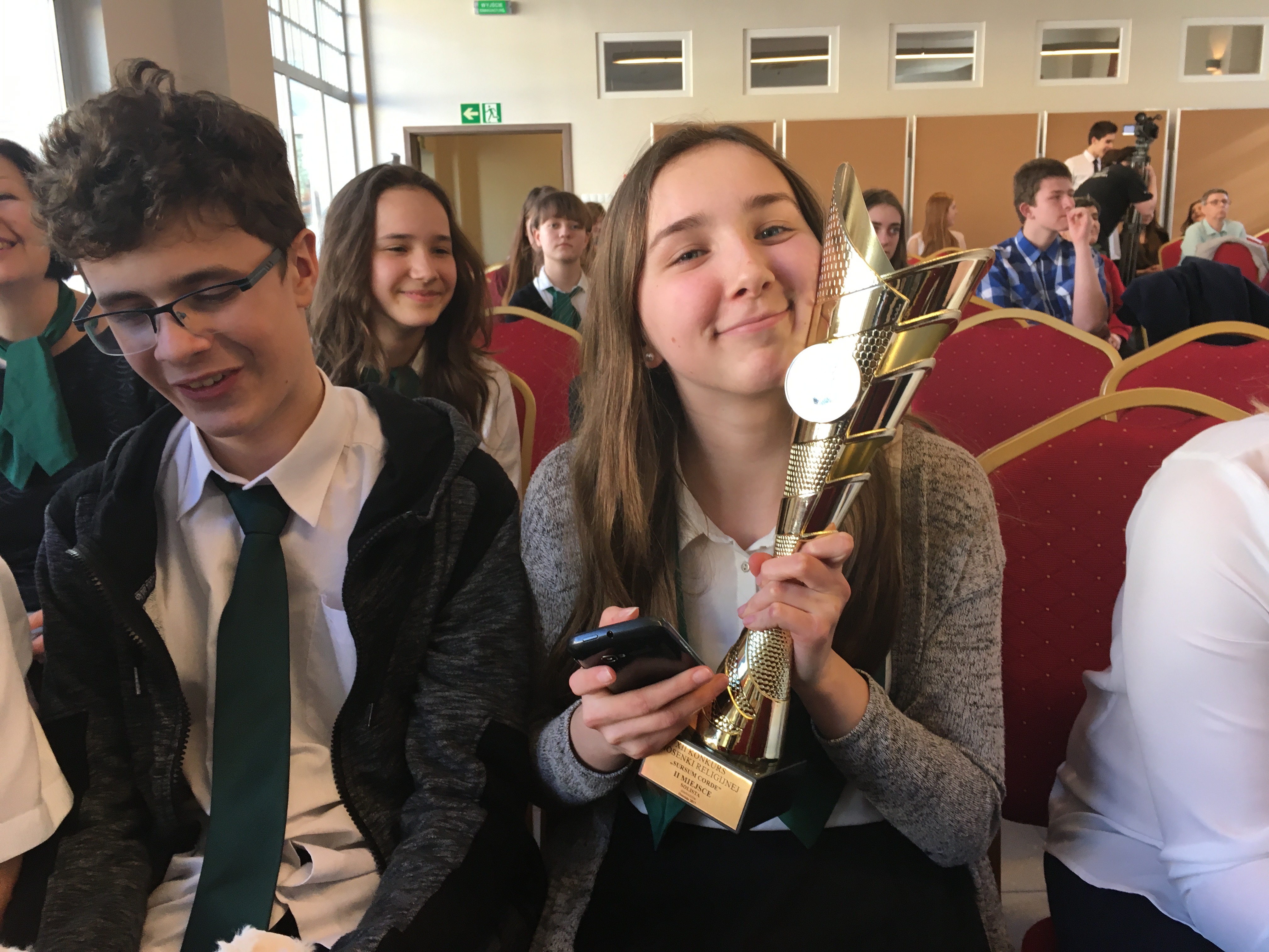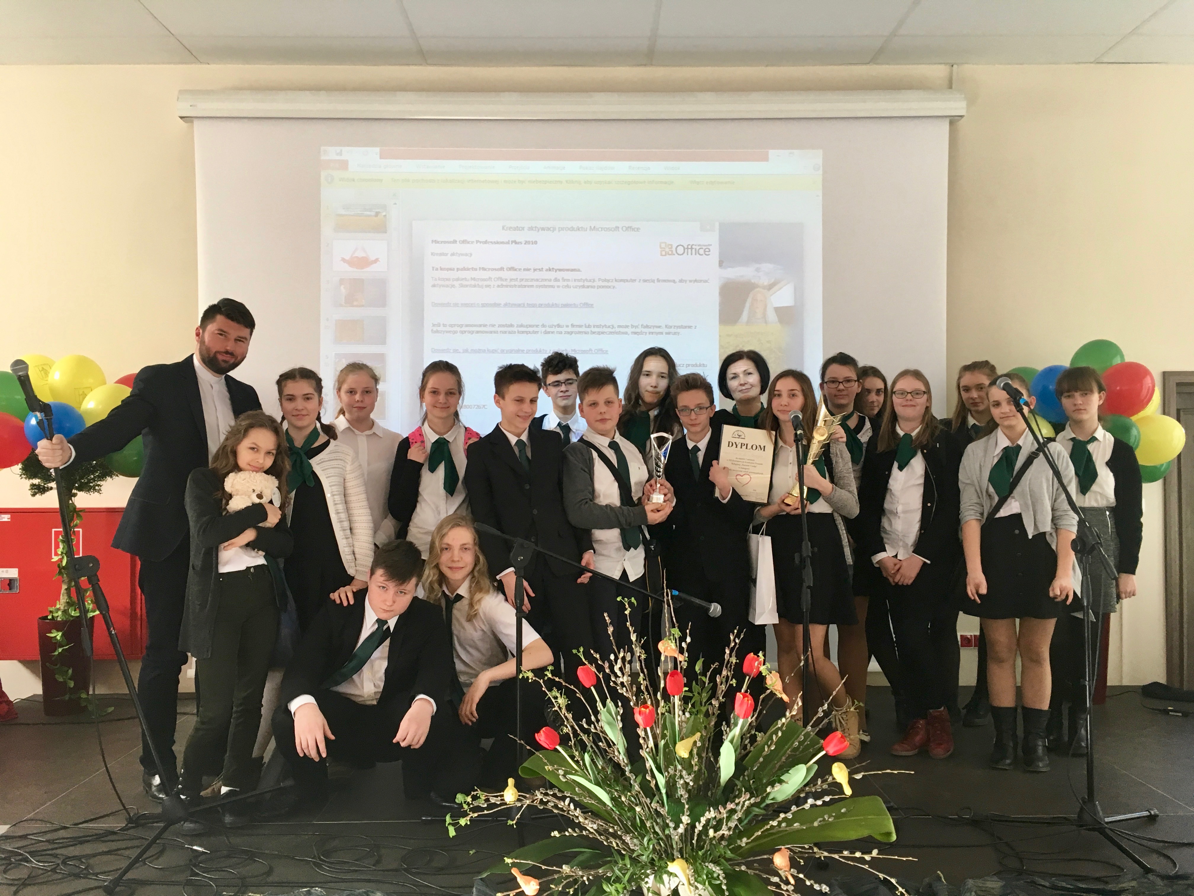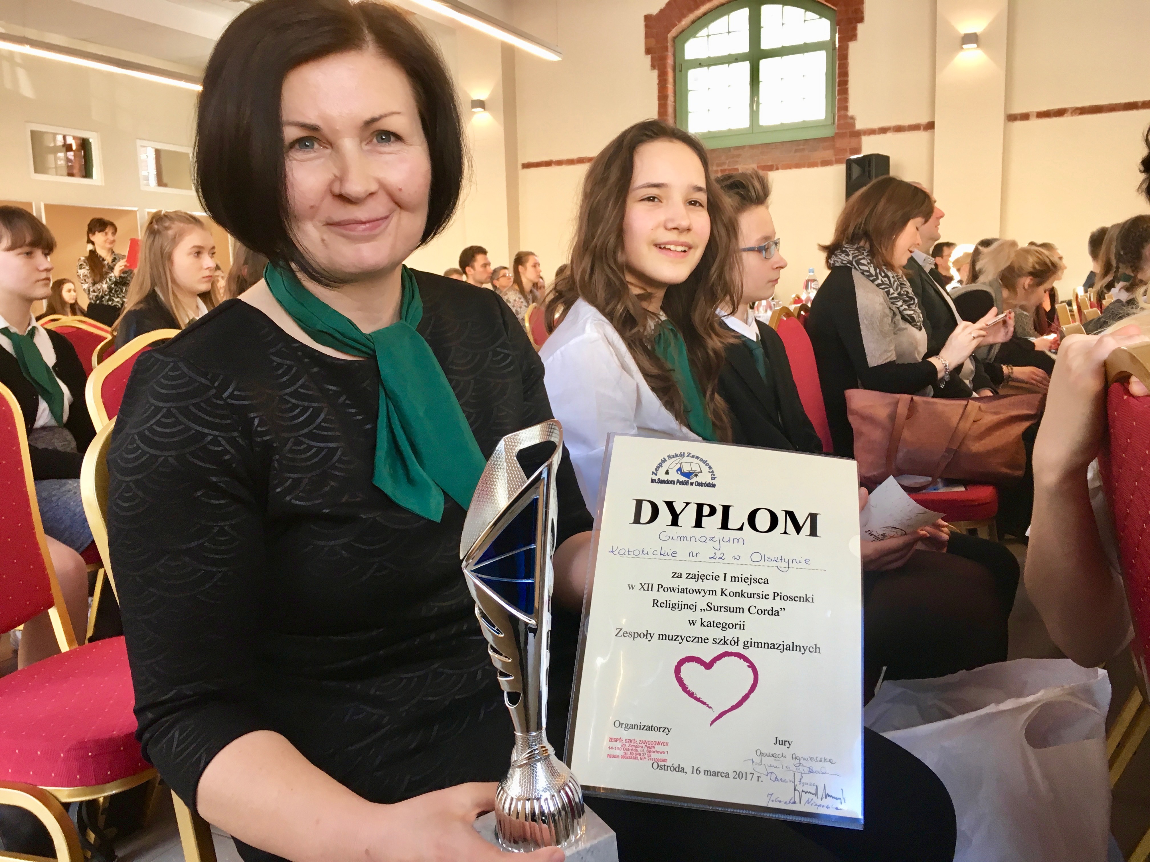 16 kwietnia 2017 – uczniowie z naszej szkoły pod opieką Pani Ani Szybanow wzięli udział w Konkursie Piosenki Religijnej w Ostródzie. W zeszłym roku nasza szkoła zajęła tam I miejsca, dlatego tegoroczna obrona tytułu wiązała się z jeszcze cięższym przygotowaniem na próbach. Pracy było sporo, ale opłaciło się ponieważ zajęliśmy: