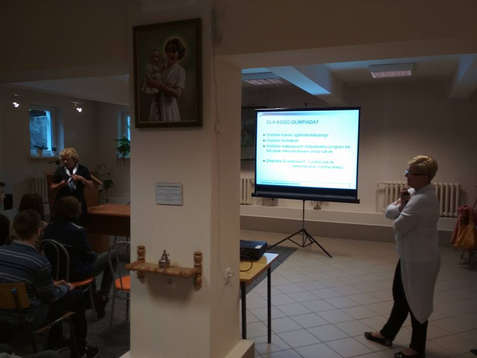 Dzisiaj (tj. 4 października) uczniowie Liceum wzięli udział w spotkaniu informacyjnym dotyczącym Ogólnopolskiej Olimpiady Wiedzy o Rodzinie. Spotkanie poprowadzili organizatorzy, ks. Michał Tunkiewicz z Wydziału Teologicznego UWM oraz przewodnicząca komisji konkursowej, p. Grażyna Przasnyska.