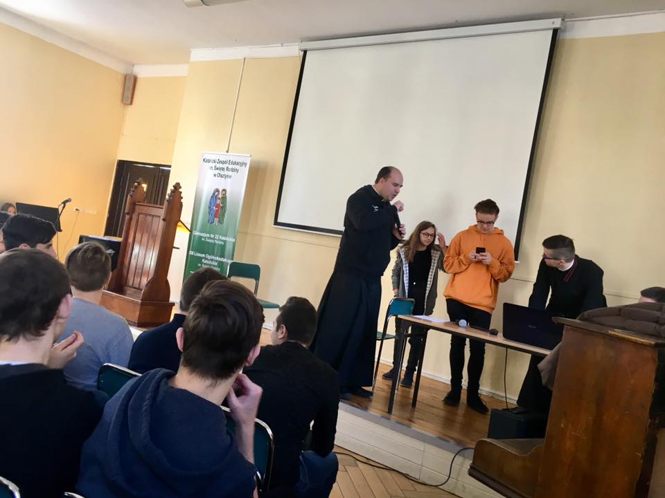 Rozpoczęliśmy rekolekcje wielkopostne w naszej szkole – gościmy ks. Kamila Wyszyńskiego (Wspólnota Bosko, prefekta szkoły katolickiej w Biskupcu). Tym razem poznaliśmy postać i nauczanie św. Jana Bosko – „diabeł boi się ludzi uśmiechniętych”.