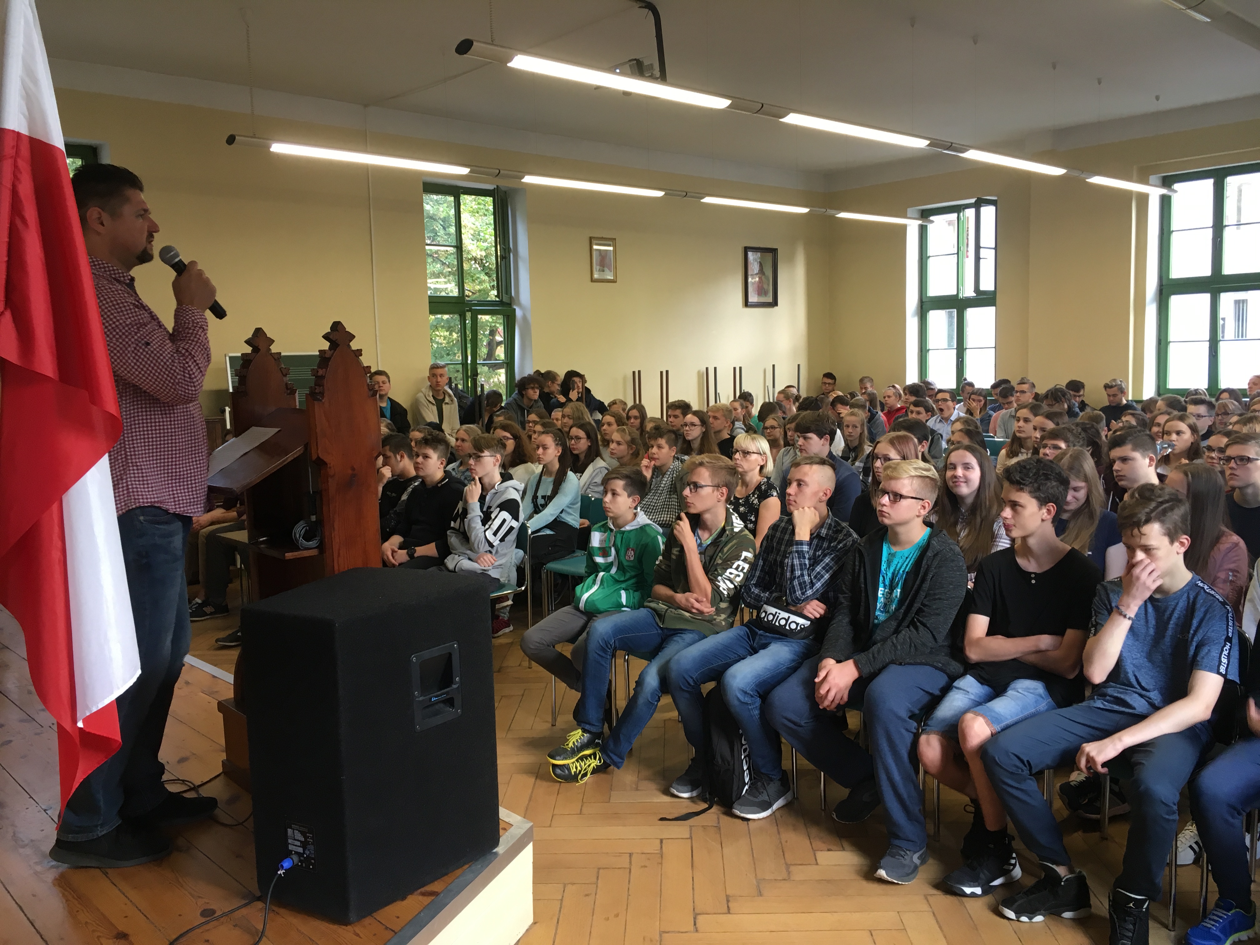 Podczas spotkania na godzinie formacyjnej 14 września 2018 roku całą społecznością szkolną spotkaliśmy się z Panem Sebastianem Nowakowski z olsztyńskiej delegatury IPN. Tematem prelekcji było: „Marszałek Józef Piłsudski jeden z twórców Niepodległej”. Dziękujemy za to ciekawe spotkanie z historią.